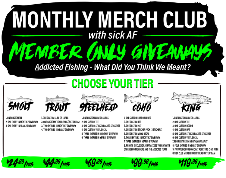 As a Monthly Merch Club subscriber, you stack entries toward the annual fishing trip with the team in Washington.